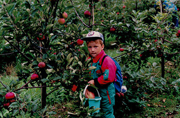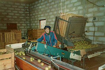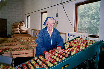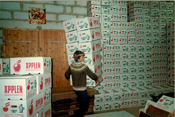 När Tores träd började bära frukt plockades äpplena i små trälådor som rymde cirka 20 kg. I gamla missionshuset (nuvarande gårdsbutiken) plockades äpplena över i andra lådor för vidare leverans till grossist.