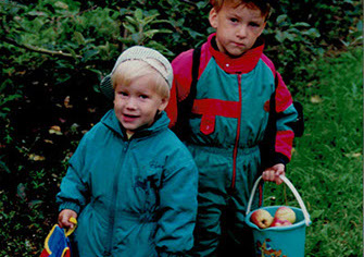 Niklas och Magnus Engelbrekt med sin egen plockutrustning. Intresset för äpple väcktes tidigt.