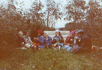 God stämning bland bygdens hemmafruar som hjälpte till vid plockningen.